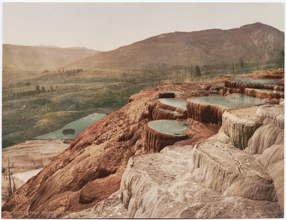 Pulpit Terraces from Yellowstone National Park circa 1898. They may have changed names to the Travertine terraces .