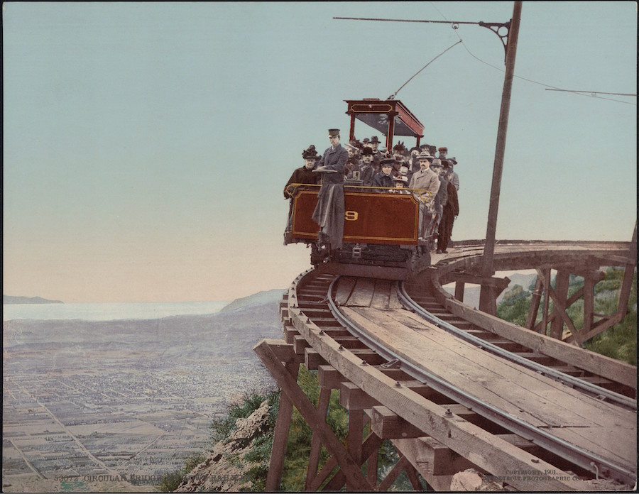 Circular Bridge, Mt. Lowe Railway 1897-1924. It was "the grandest scenic trip on earth - champagne and caviar served."