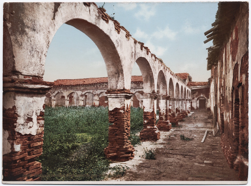 Interior of Corridors, Mission San Juan Capistrano, 1906.