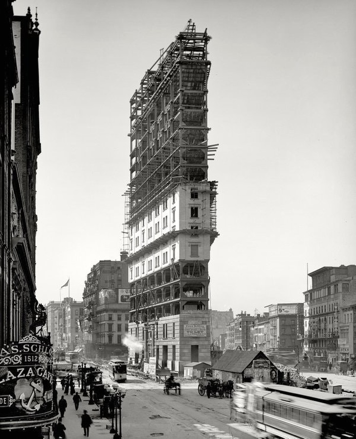 4 Longacre Square, New York, 1903, one year before it was named Times Square. That happened because New York Times moved their headquarters there.