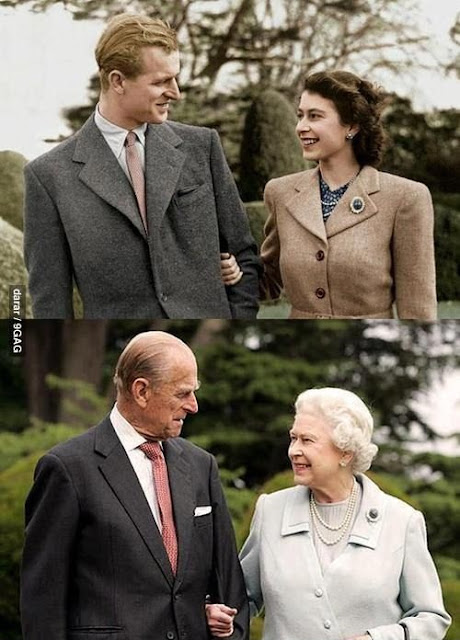Her Majesty and Prince Phil – same brooch, same pearls, same love.