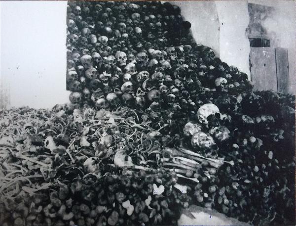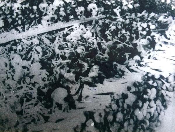 Những người chết đói ở trại Giáp Bát, tới năm 1950 được cải táng đem về nghĩa trang Hợp Thiện, Hà Nội. Các loại xương được phân loại sắp xếp trong bể chứa.