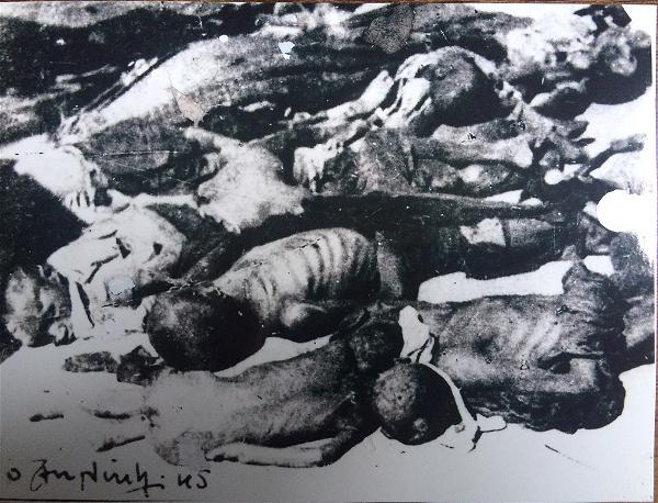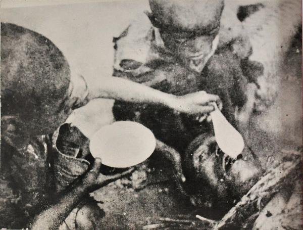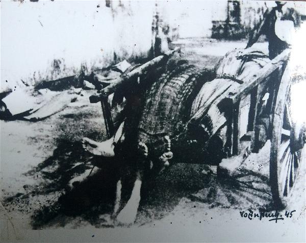 Khi nạn đói lên đến đỉnh điểm vào đầu mùa hè năm 1945, người chết la liệt, không phân biệt được nam nữ, già trẻ, các tình nguyện viên nhặt xác đến một chỗ để chờ xe mang đi chôn.